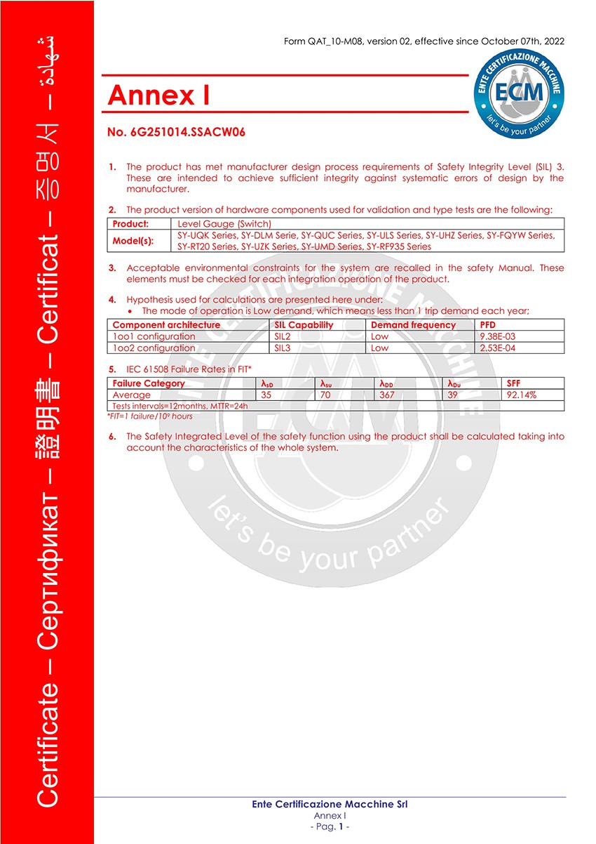 SIL3等級證書